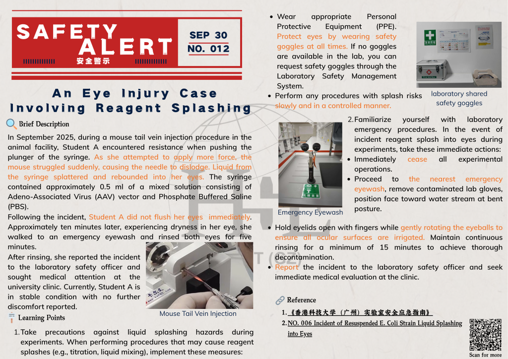 NO. 012 An Eye Injury Case Involving Reagent Splashing