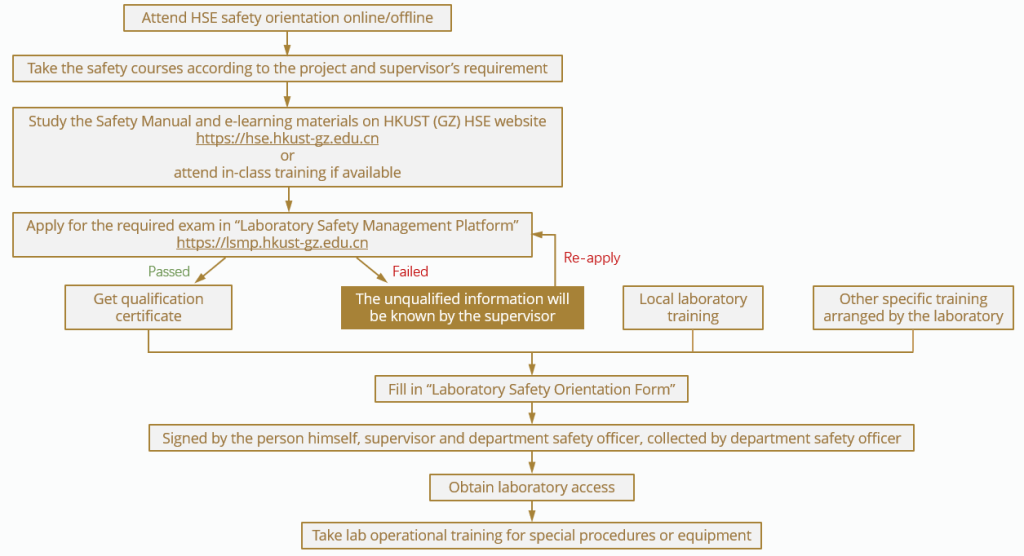 The Safety Orientation for Laboratory Personnel is approximately 2 hours, and covers topics such as HKUST(GZ) safety management scheme, roles and responsibilities of laboratory personnel, safety program requirements and available support and resources.